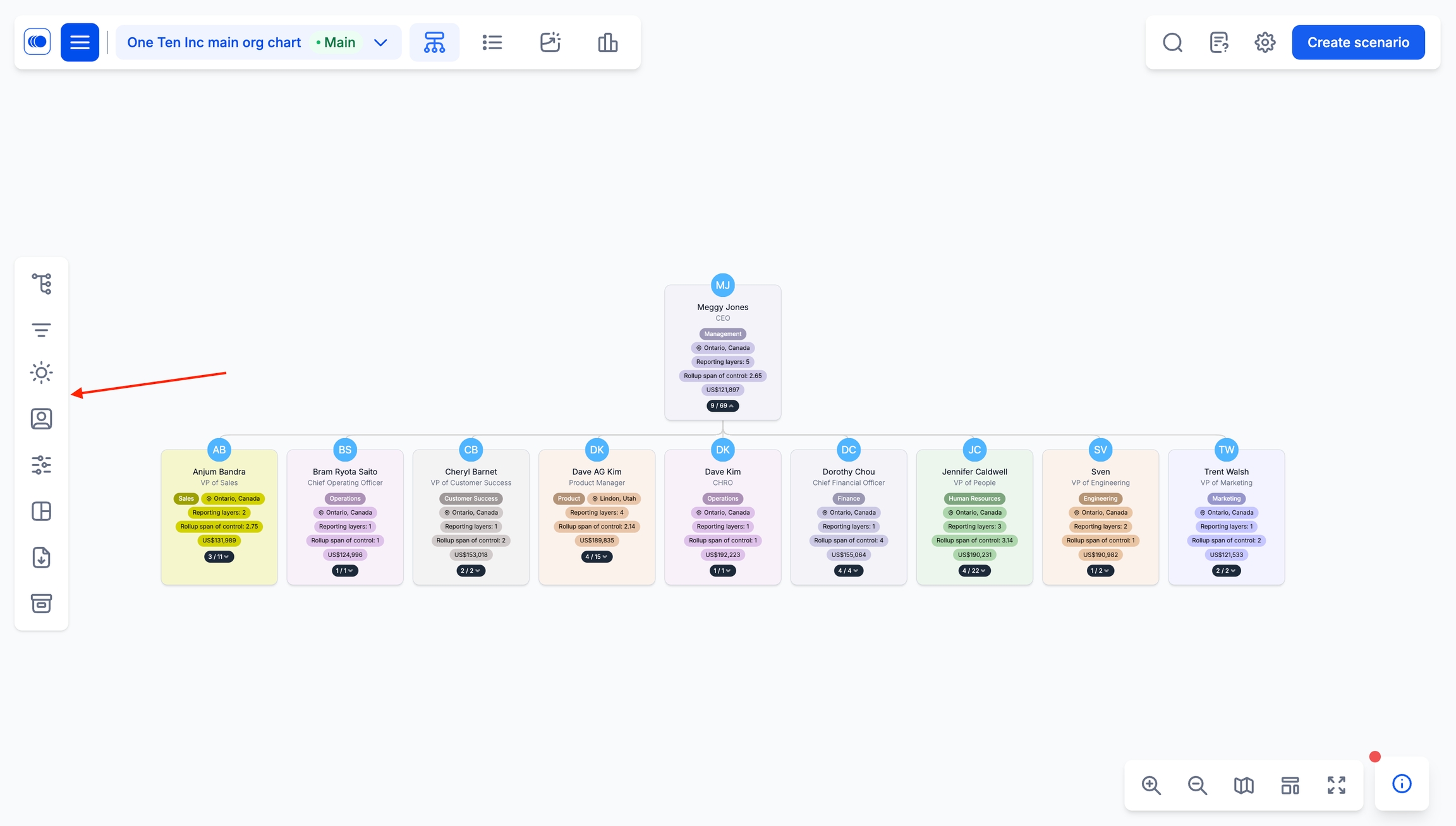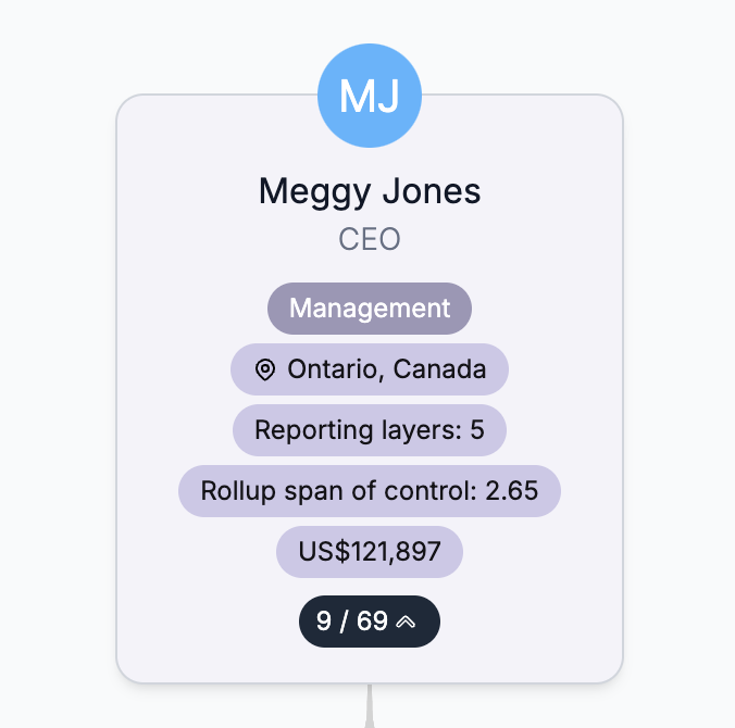 Easily navigate your org chart by double-clicking to zoom directly into a manager’s team, providing quicker access to detailed views.